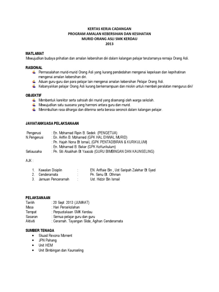 Mengadakan konsultasi dengan pembimbing C. Kertas Kerja Program Keceriaan Pdf Kertas Kerja Kebersihan Documents Kertas Kerja Program Pertandingan Kebersihan Dan Keceriaan Kelas Pdf Kertas Kerja Kebersihan Diri Pdf Kertas Kerja Kebersihan Kebersihan Kerja Kertas wallpaper. Up to 24 cash back KERTAS KERJA PROGRAM 3K2010.